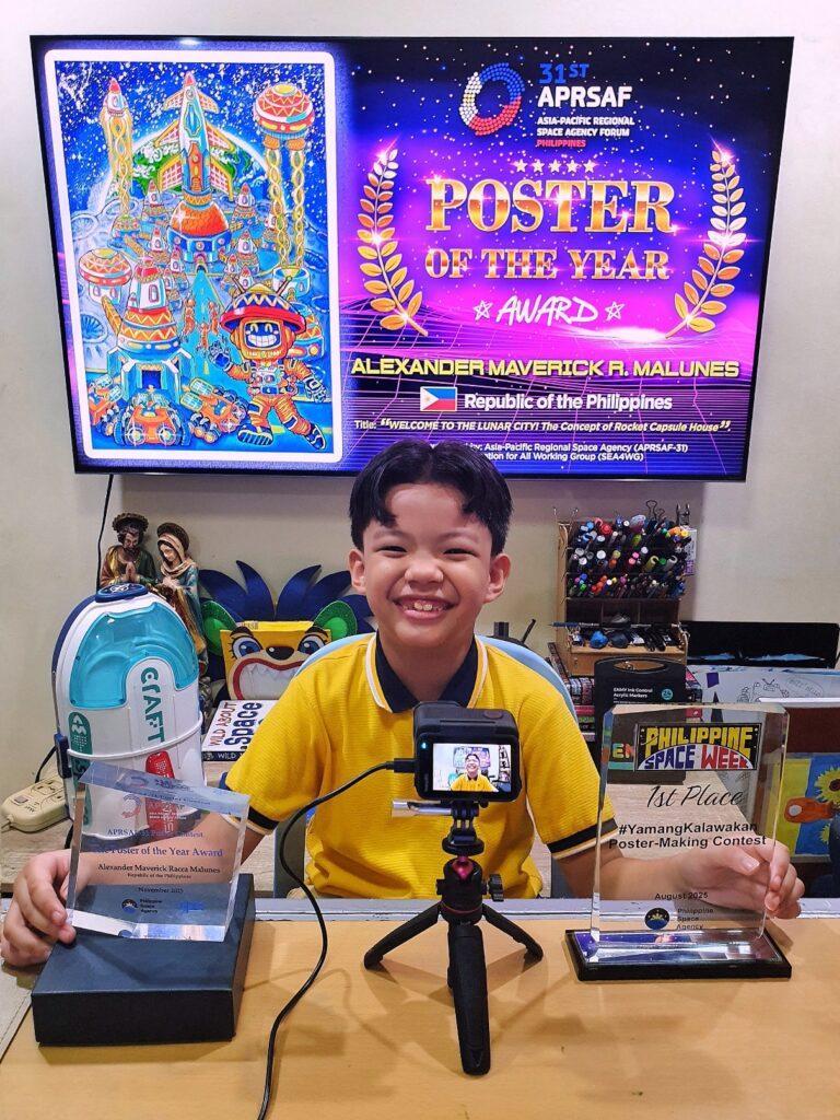 An 8-year-old Filipino artist, Alexander Maverick Racca Malunes, won the Poster of the Year Award at the 31st Asia-Pacific Regional Space Agency Forum (APRSAF-31), which was hosted in Cebu City.