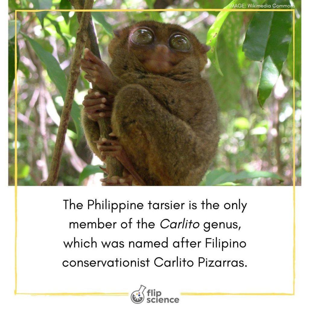 FlipFact of the Day: The Philippine tarsier’s Latin name was changed from Tarsius syrichta to Carlito syrichta in honor of “Tarsier Man” Carlito Pizarras. Formerly a local hunter, Pizarras became a strong advocate for the species’ conservation, and now works as the field supervisor of the Philippine Tarsier Sanctuary.