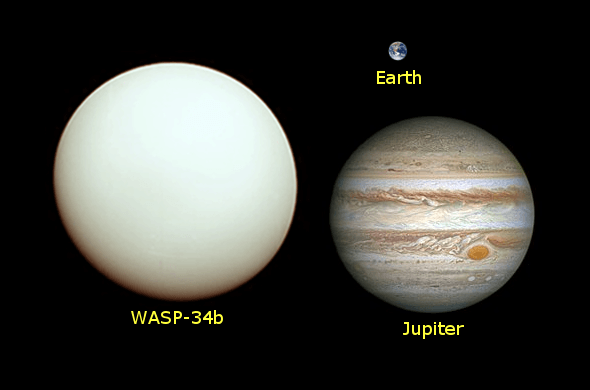 WASP-34b is a gas planet 1.22 times the radius of Jupiter, making it larger than our Solar System’s biggest planet.